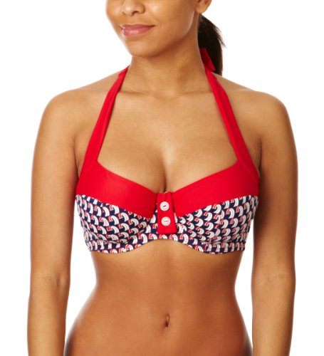 panache swimwear Panache Page Halter Bikini Swimwear Top, 30F, Navy Multi